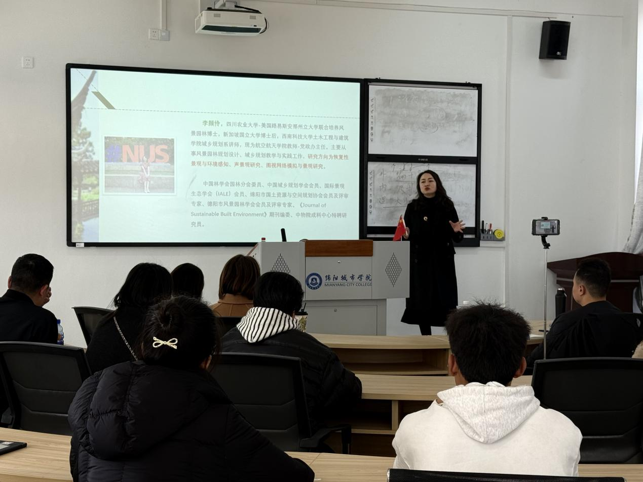 12月5日,学院在博远A508举办“拥抱不确定的惊喜——一位规划/景观教师的交叉学科探索手记”主题讲座,特邀西南科技大学李颜伶博士担任主讲,城乡规划与风景园林专业教师及学生代表共40人到场聆听。