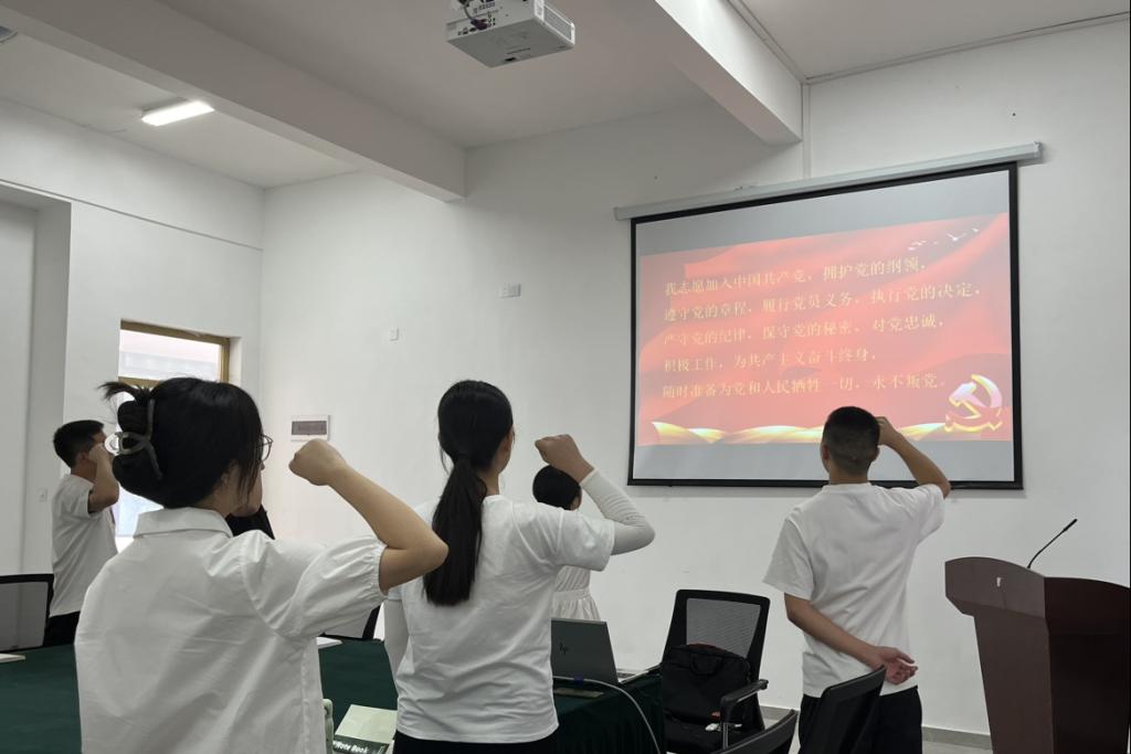 会议在庄严的宣誓中拉开帷幕。全体党员面向党旗,高举右拳,齐声诵读入党誓词,铿锵誓言表达对党的忠诚和为人民服务的坚定决心。