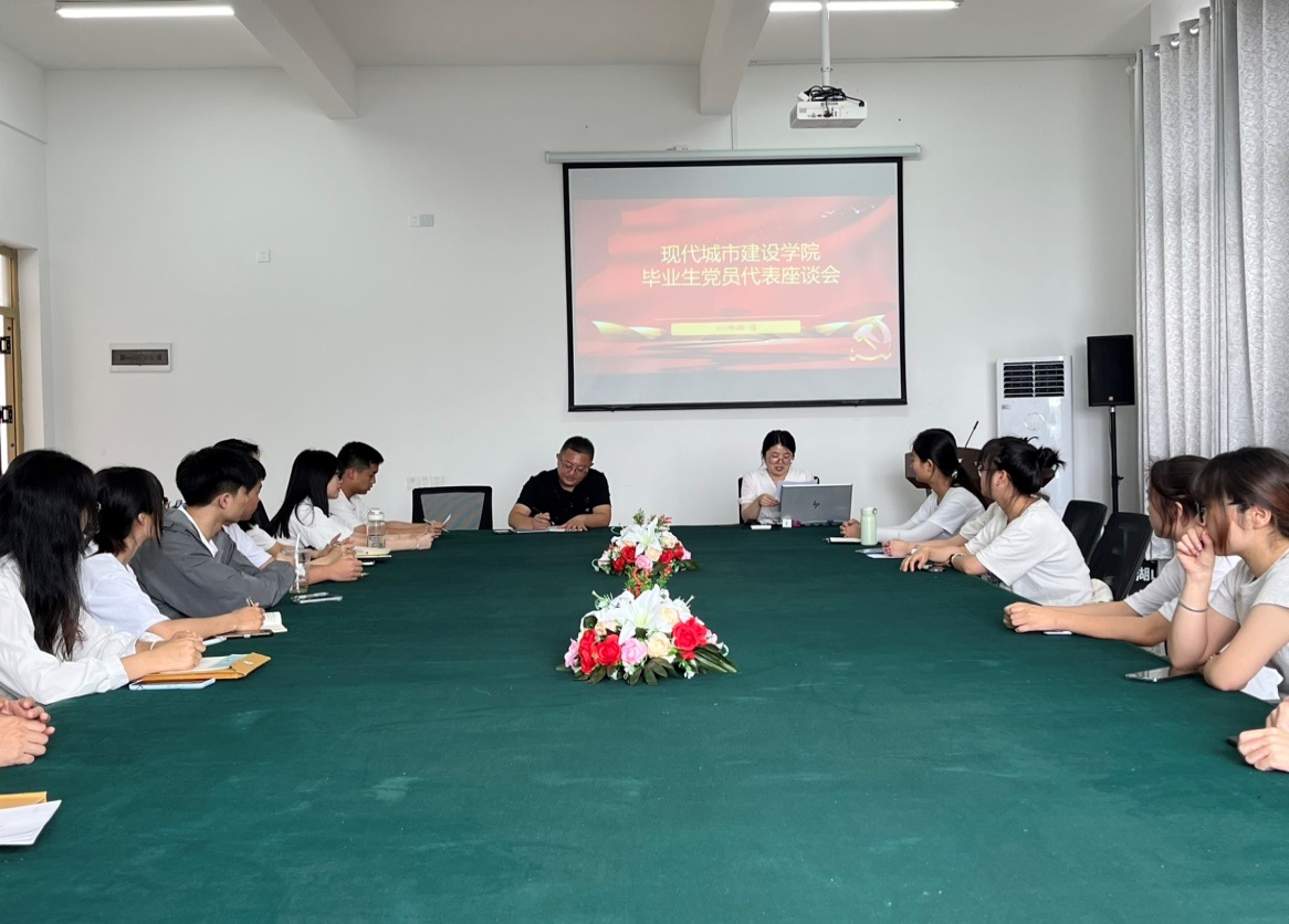 6月17日,现代城市建设学院在博远楼A501举办“文明离校显风采,争做模范建新功”2025届毕业生党员代表座谈会。学院党委副书记唐军与毕业生党员代表齐聚一堂,重温入党誓词,共话成长收获,为即将奔赴新征程的青年党员注入精神动力。
