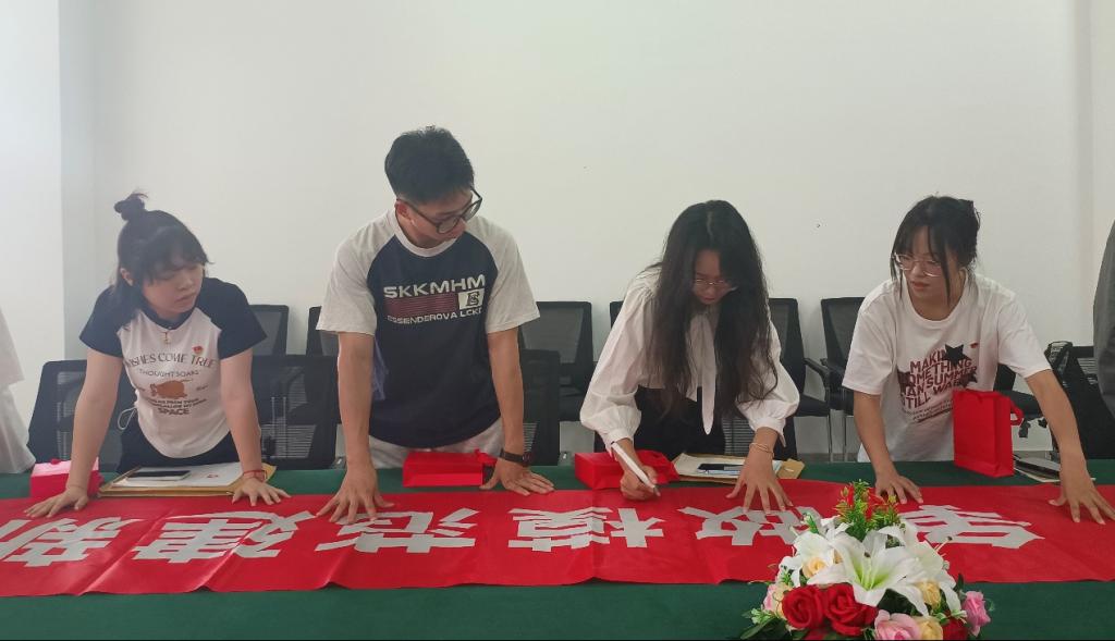 会场还举行了纪念品赠送、横幅签名和合影留念等环节。纪念品印有学院标识与“建党百年·青春向党”元素,寓意母校深情祝福;横幅签名则写下对文明离校和建功立业的庄严承诺。