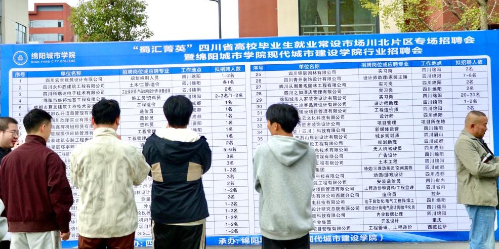 11月7日,现代城市建设学院2025年秋季校园行业招聘会在安州校区二期广场举行。49家行业企业携230余个岗位进校揽才,专业对口率达100%,为2026届毕业生送上“量身定制”的就业大餐。