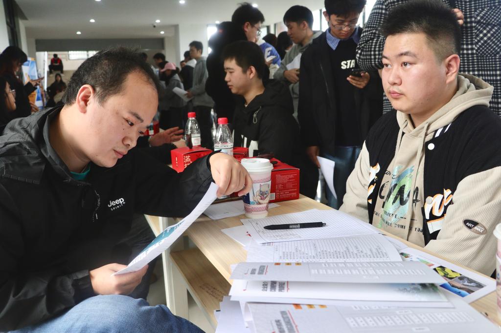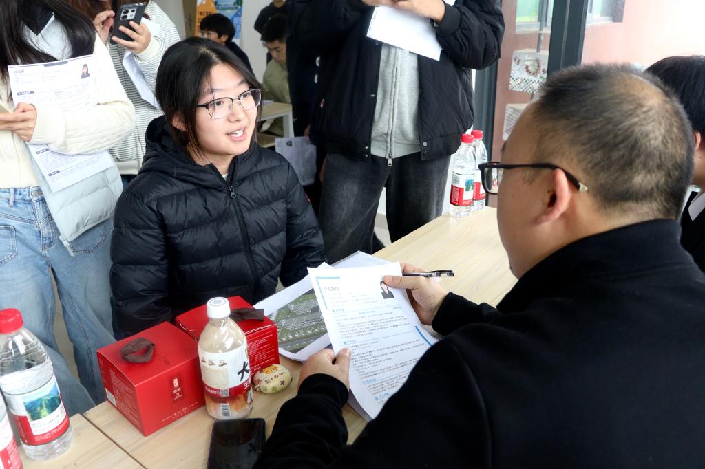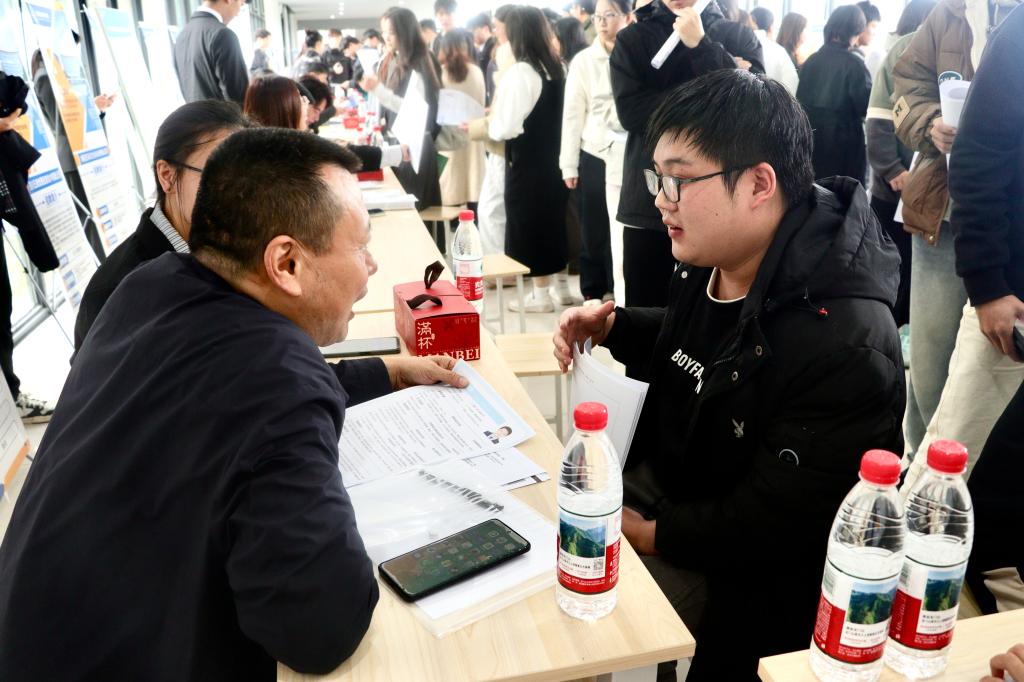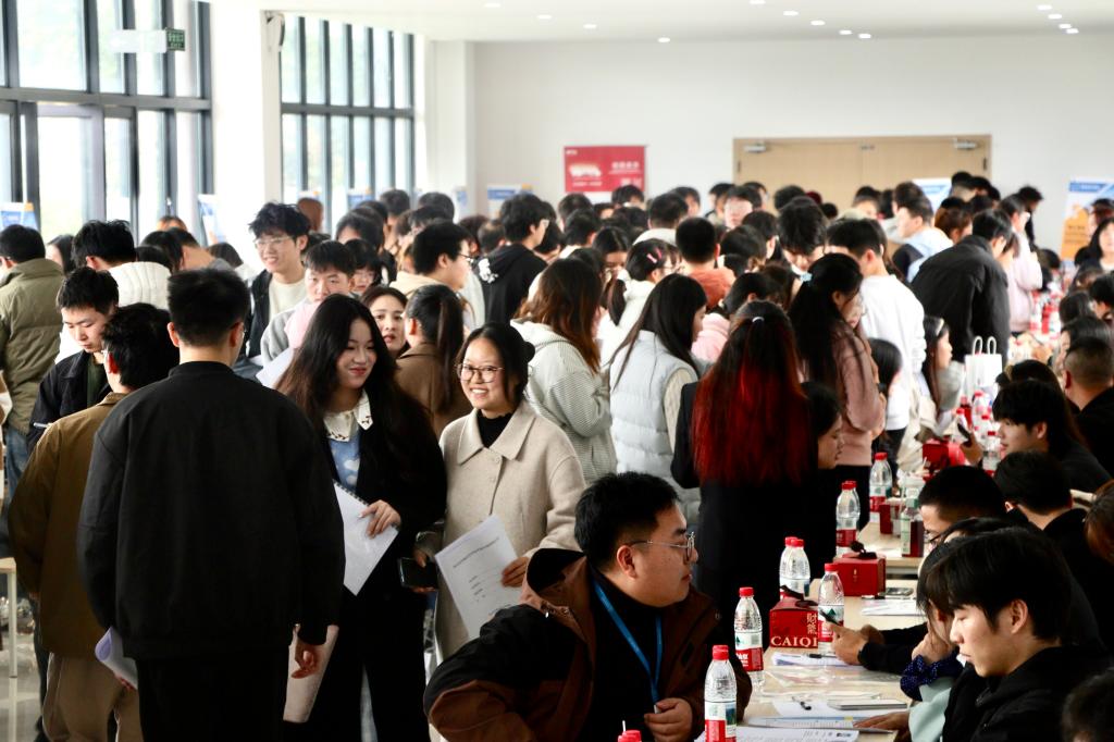 招聘会现场,企业展板上岗位需求、薪酬待遇、晋升路径一目了然,同学们手持简历穿梭其间,面对面咨询、现场投递、即时面试,气氛热烈有序。