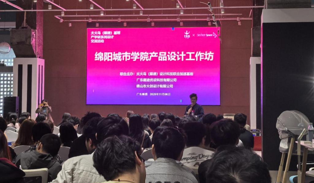 在鹏城深圳,师生们走进环球数码、佳简几何、洛可可,系统了解IP孵化、3D建模、CMF工艺;在华强北博物馆与硬件加速器,体验从芯片到成品的“最后一公里”。在佛山太火鸟联合加速基地,学生们分组完成主题设计任务,企业导师当场点评并给出优化建议。
