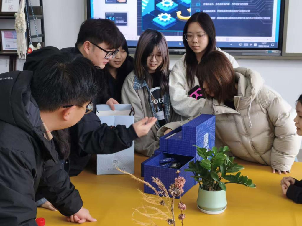 在需求洞察环节,袁小雨引导学生聚焦用户真实痛点——传统礼盒造型单一、功能固化、开箱体验差;在方案设计阶段,他详细拆解“硬质纸板+卡接结构”在成本、加工可行性上的权衡逻辑,并演示卡接胶条与定位卡槽如何降低组装工时;在功能优化环节,通过原型测试与用户反馈的迭代细节,让学生直观感受“设计——验证——优化”闭环的重要性。“成本太高的是‘作品’,能解决用户痛点的才是‘产品’。”袁小雨的总结引发全场共鸣。