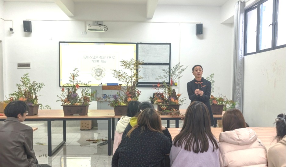 11月14日,现代城市建设学院在博远楼A205举办“花语空间——绿化类小品设计的创新应用”主题教学活动,特邀成都农业科技职业学院蒋跃军教授担任主讲,专业教师包静协同指导,带领学生开启一场“花艺+景观”的创意之旅。