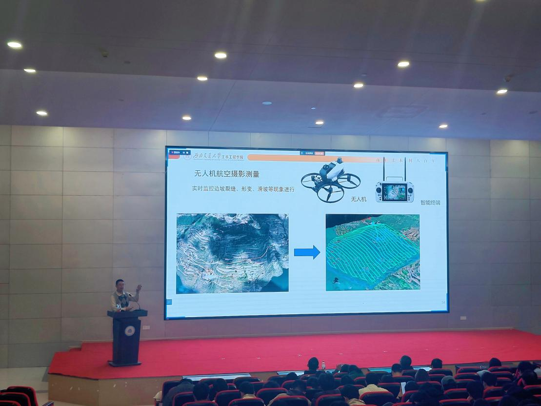11月14日,绵城致远讲坛暨城建学院"学术交流月"专题活动在安州校区博润楼报告厅顺利举行。活动特邀西南交通大学土木工程学院教授、博士生导师、岩土工程系主任杨涛,作题为《高边坡支挡结构及智能风险防控技术》的学术报告。报告采用"线下主会场+线上直播"双通道形式,吸引土木工程、测绘工程、工程造价、工程管理、交通工程、地理信息科学等六个专业师生共同参与,呈现了一场融合前沿理论与工程实践的学术盛宴。