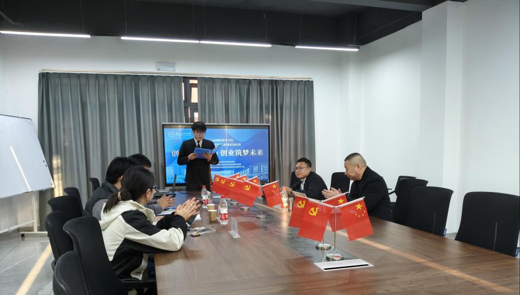 12月25日,第十七届大学生创新创业大赛暨中国国际大学生创新大赛院级选拔赛在博安学生社区会议室成功举办。赛事以“创新赋能青春,创业筑梦未来”为主题,特邀学院副院长徐健、现代产业学院双创中心主任李衡、产品设计教研室副主任李明浩、CFEC项目成员陈平担任评委,现场师生百余人共同见证双创风采。